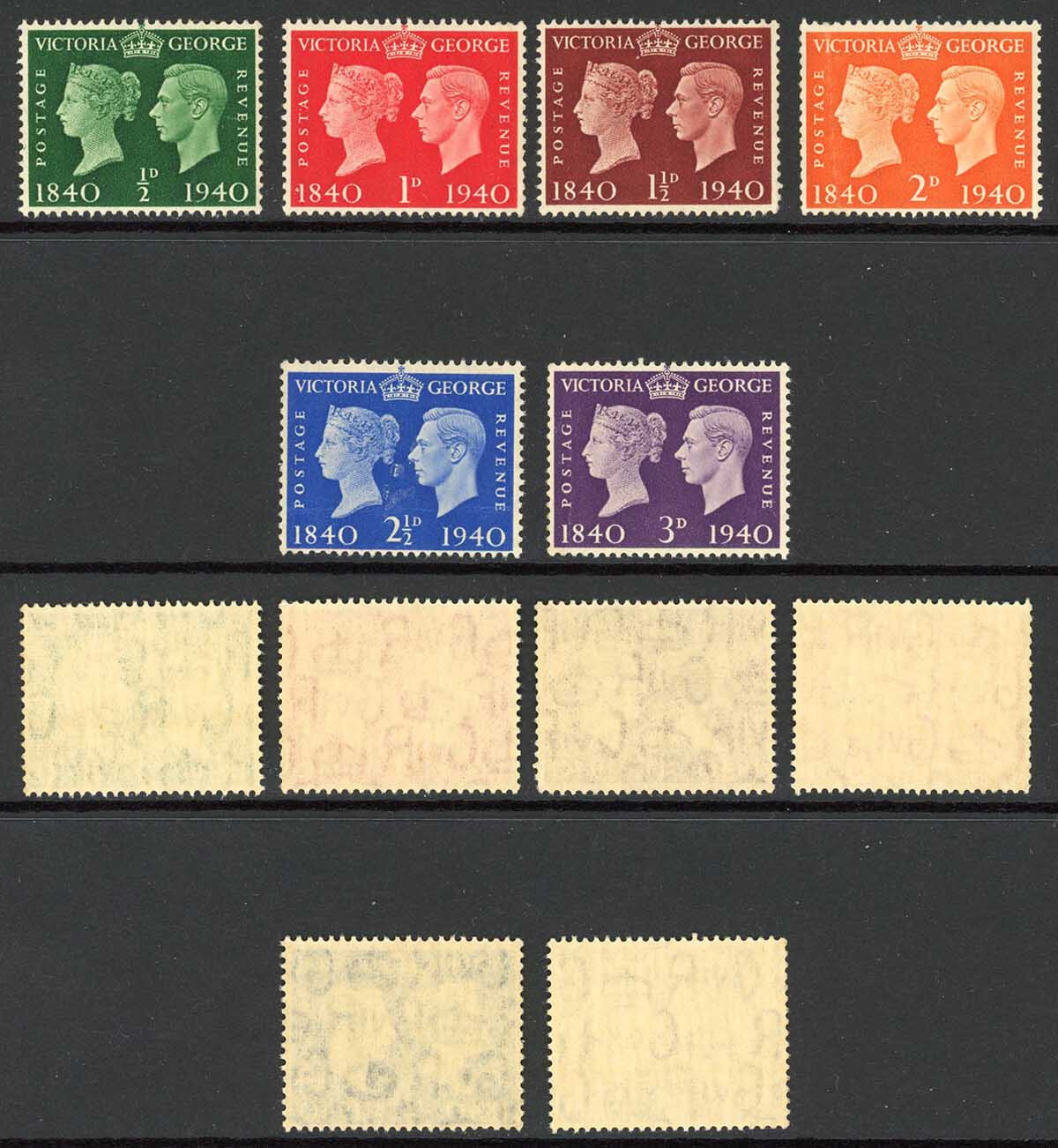 SG479-484 1940 Centenary set U/M SG479-484 1940 Centenary set U/M We use UK condition abbreviations.U/M (un-mounted mint) is Mint Never Hinged or Never Hinged Mint.M/M (mounted mint) is Hinged Mint.POSTAGEPlease Rem ... Read More