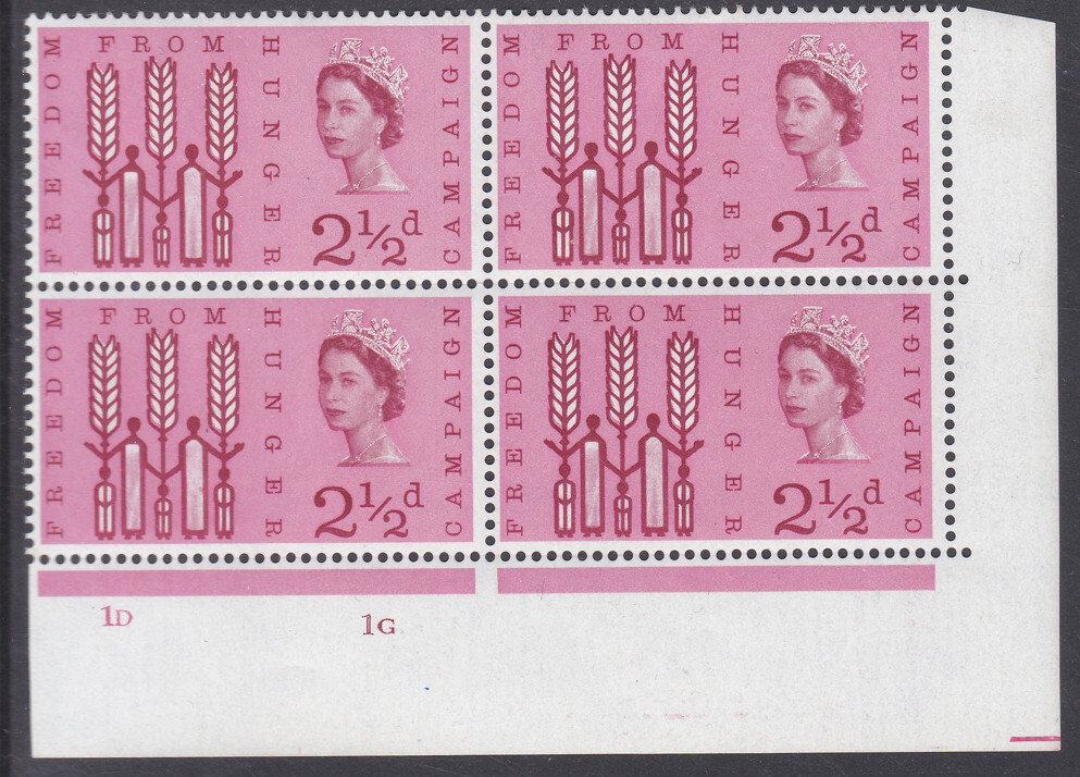 Sg634 2½d 1963 Freedom from hunger Cylinder 1D1G block No Dot UNMOUNTED MINT