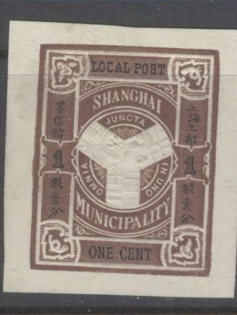 Shanghai, postal cutout 1 cent brown