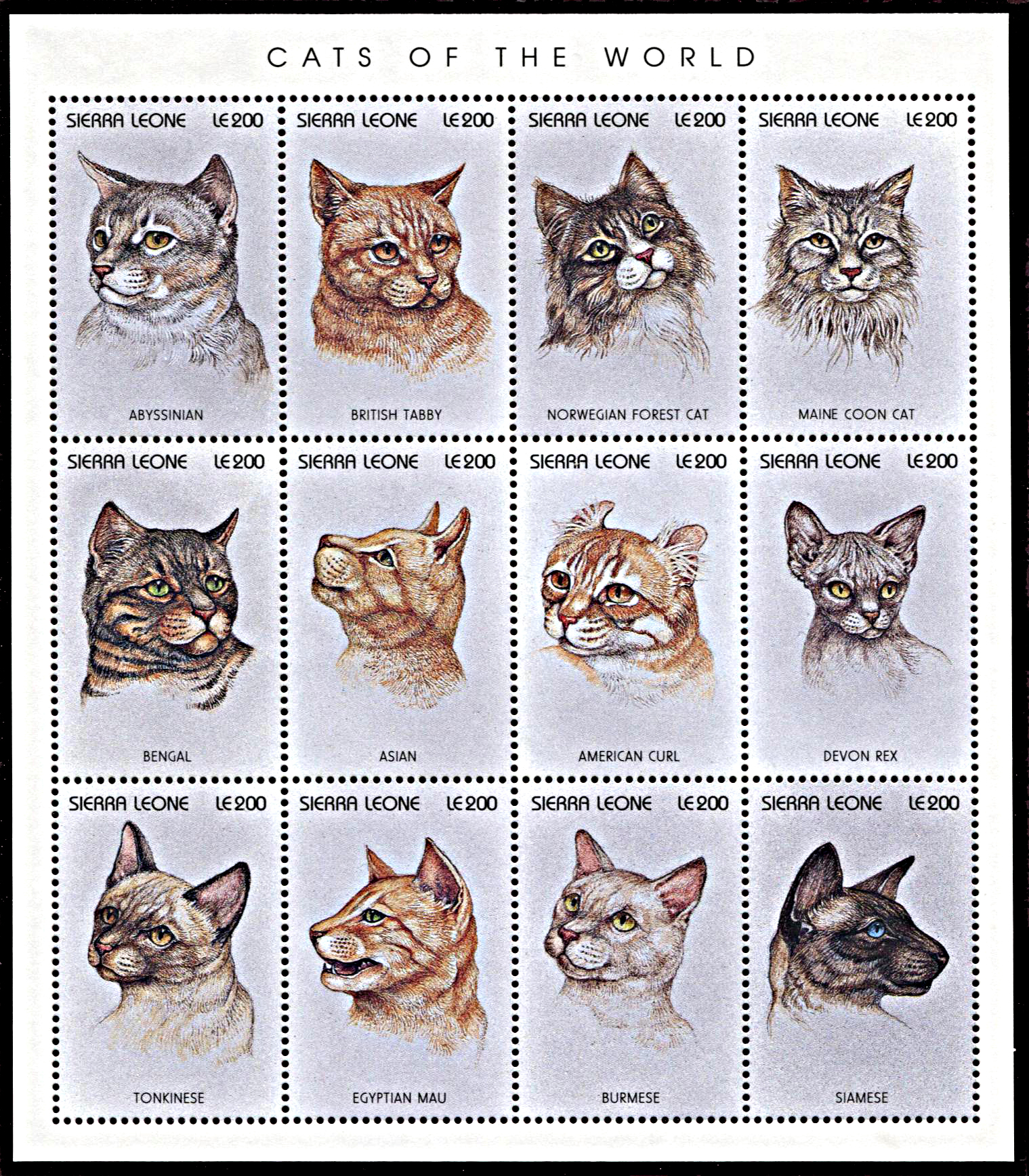 Sierra Leone 1892, MNH, Cat Breeds miniature sheet