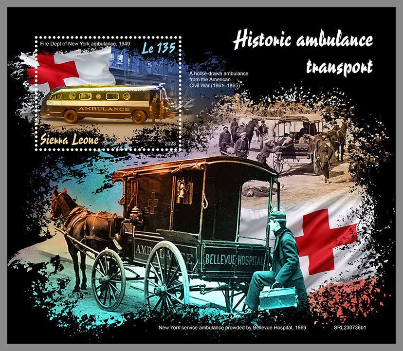 SIERRA LEONE 2023 MNH Historic ambulance transport S/S #736b1
