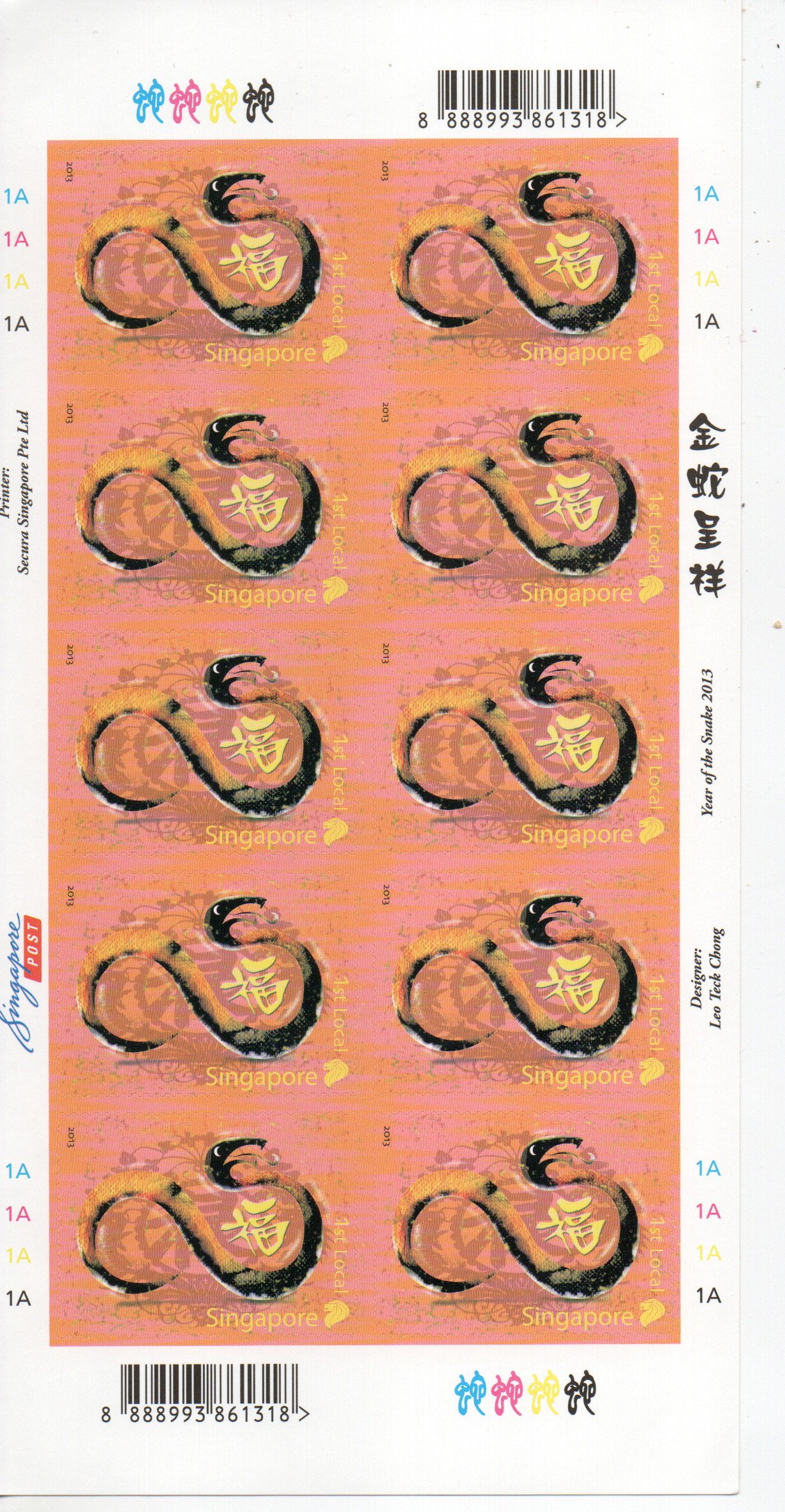 Snake year, sheetlet of 10, mint, never hinged, 2020 catalog 8.50Seller Information