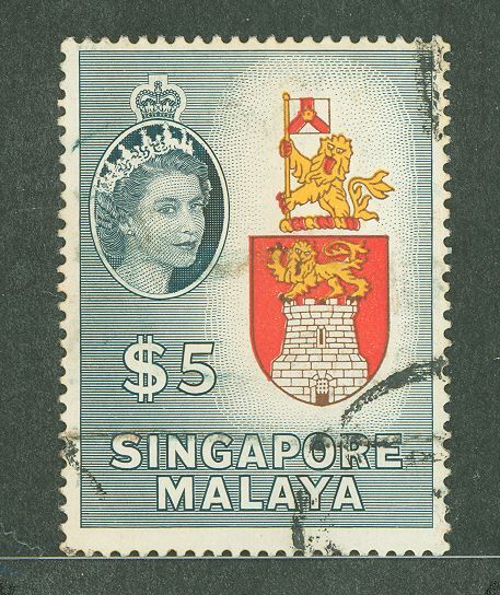 1955 $5 Arms of Singapore, face free cancellation. APS Stamp Id: 502006104 APS Seller Id: 575340 Hinge Type: Not Specified