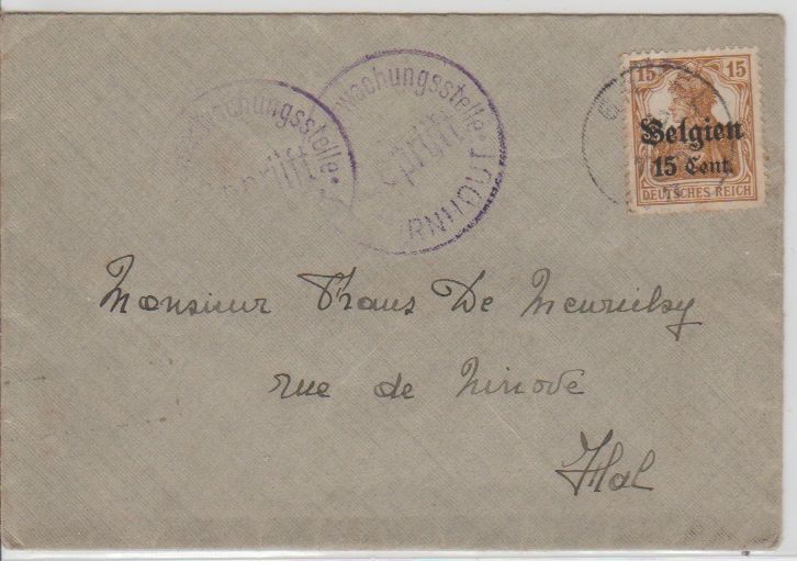 Small censored cover to Brussels