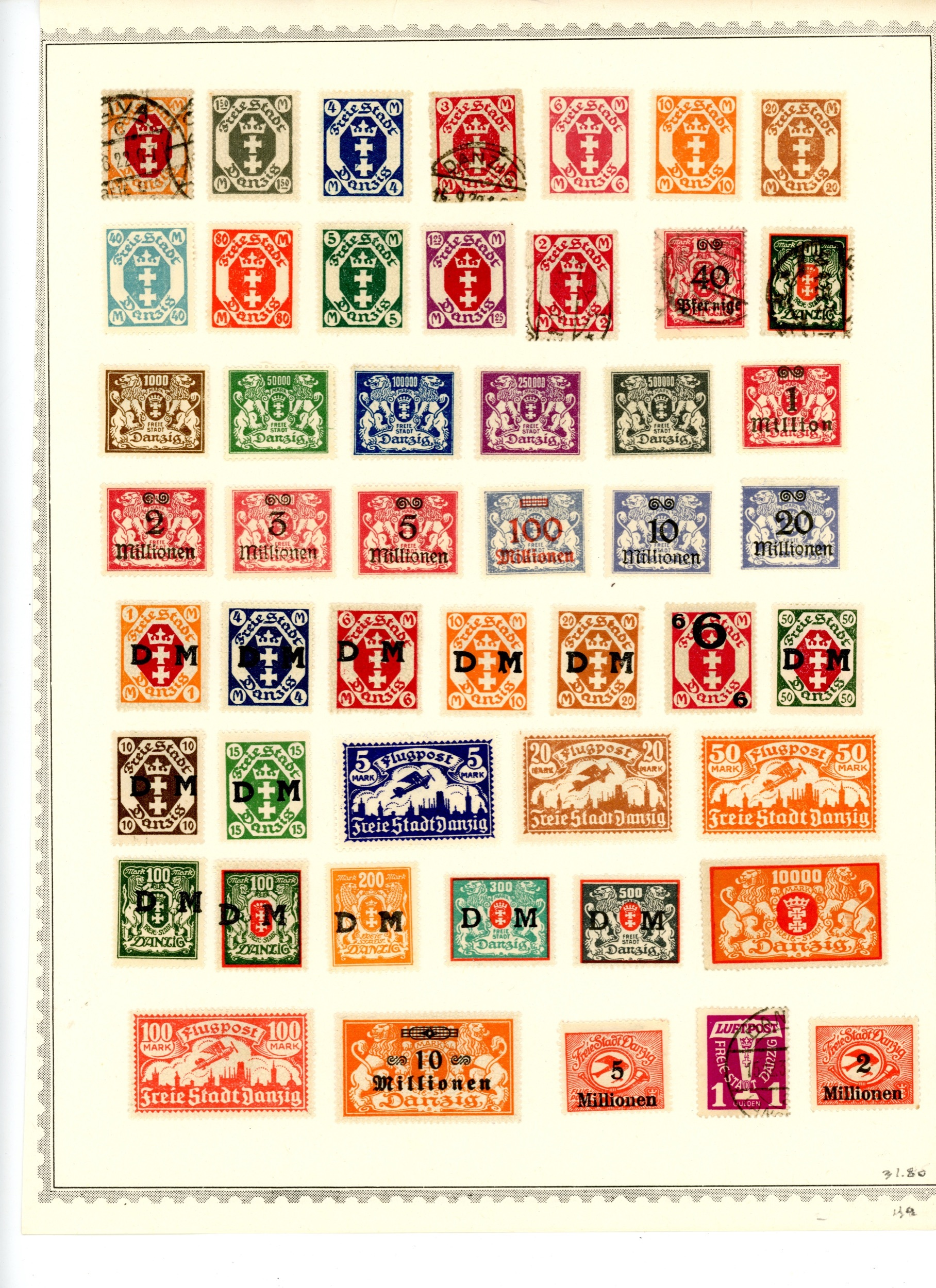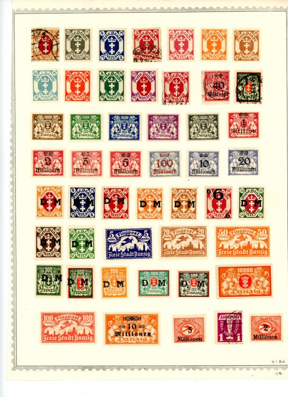This Lot is small but quite nice collection of Danzig stamps mostly from the 1920's. 49 stamps are included at a Scott 2025 Catalogue value of $31.80. This lot consists of 43 Mint Hinged and 6 Used - general postage, air mails, and officials. All are nicely hinged to one album page. All have deep rich coloring, mostly nicely centered, and all with excellent perforations all around. Front and reverse sides of stamps are clean. Mint Hinged stamps have original gum. Please see pictures of front and reverse for condition and quality.Please note, this Seller will provide consolidated shipping of multiple orders from the same buyer in order to save on overall mailing cost.