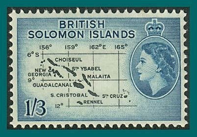 Solomon Islands 1960 Map, 1'3s mint #100,SG91b