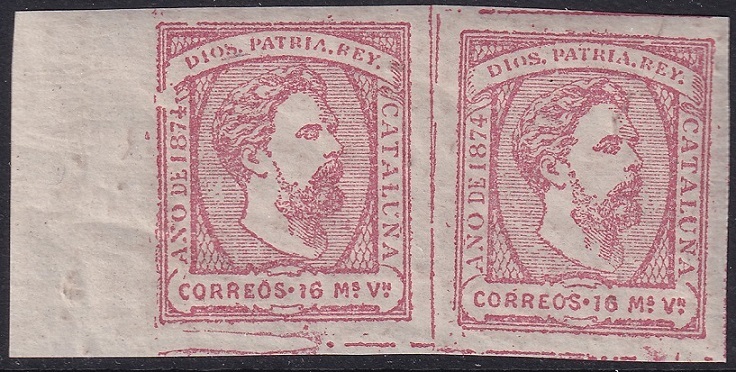 Spain 1874 Sc X4 Carlist margin pair MLH* Espana Ed 157 natural gum inclusions