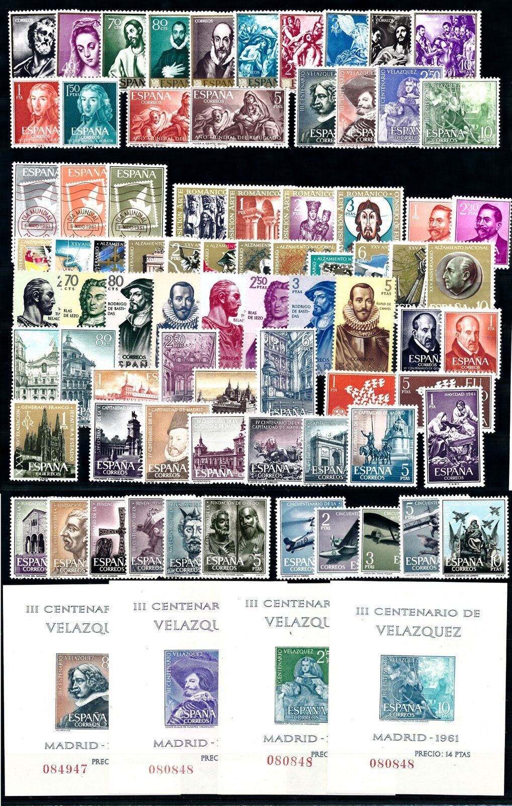 Grade: UngradedSpain 1961 Complete Year Set MNH Mint Never Hinged Very Fine ConditionAll our complete yearsets are as shown on the picture. These may therefore differ from your album or catalogue!Standard Shipping and International Standard Delivery will be sent without tracking code.Economy Shipping and Hip International Standard Delivery will be sent as registered mail with tracking code. A signature is required for delivery.*STANDARD SHIPPING AND INTERNATIONAL STANDARD DELIVERY IS AT BUYERS RISK*Shipping to China, Russia and former Soviet Union States, Romania, Bulgaria, Albania, India, Turkey, Indonesia, Malaysia and all African countries via Registered Mail only!!(ALWAYS SELECT THE HIGHEST SHIPPING OPTION!)*Worldwide shipping valued at over US $100 will be sent via Registered Mail only.Select Hip International Standard delivery as shipping option!*Shipping to countries in Latin America valued at over US $50 will be sent via Registered Mail only.Select Hip International Standard delivery as shipping option!*All purchases paid for will be shipped within 4 business days. We are not responsible for uninsured or unregistered mail. By bidding on or buying purchases, you agree with above terms of shipping.Europost-stamps, The Netherlands Stamp, coin and banknote business since 1986Member of Stampdealers Associations (in the Netherlands and Belgium) NVPH, IFSDA, FNIP, BBKPH