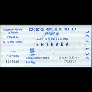 Exhib.Ticket - ESPAMER 84 Stamp Exhib. Madrid. April 27-May 6.