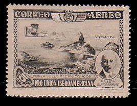 _spain, scott #c50, 1930 santos-dumont and first flight of his airplane air post issue in mint never hinged condition__.__scott 2016 catalogue value $3.75_