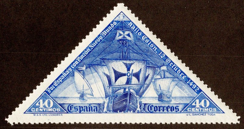 40c Santa Maria, Nina and Pinta Columbus Tribute Triangle. Unused hinged.
