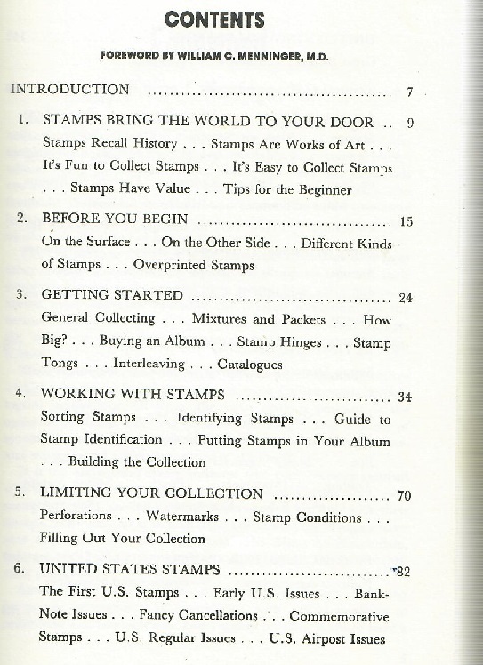Stamp Collecting as a Hobby by Burton Hobson. ISBN 0806947942. A 190 page hardbound book published in 1986. Explains how to identify and evaluate stamps, explains how to start a collection, and shows a variety of stamps from around the world. This book is a former library copy with library markings, hand stamps, and stickers. It is in Good condition