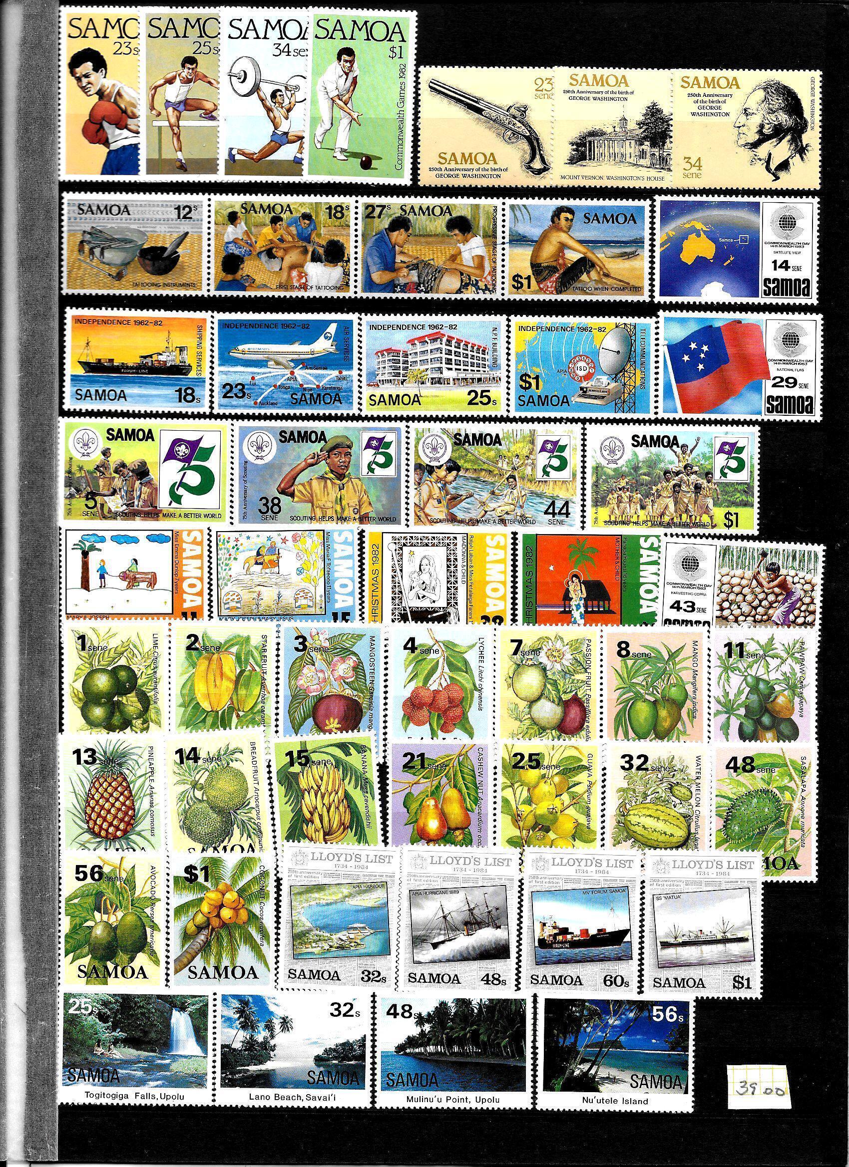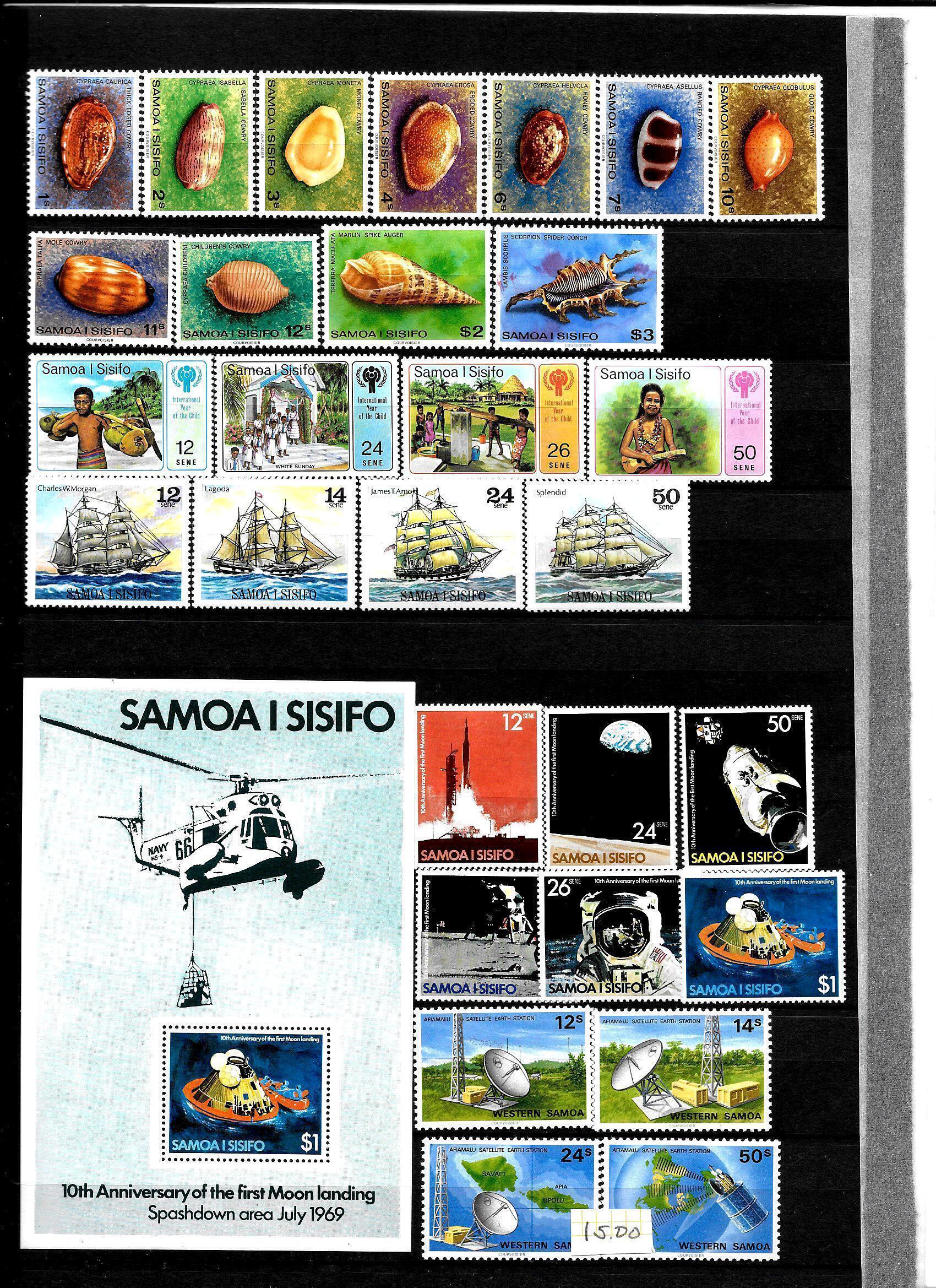 356 different stamps of Samoa with 13 sheets. stamps. Mix of used, MH and MNH stamps. Many complete sets complete sets. In excellent condition. 12 scans/$45,00 USD / $61,00 CAD ou faire une offre/Cat val $ 266,00 USD / $ 356,00 CAD/Shipp.Canada $4,50 / World $8,00 USDSeller Information