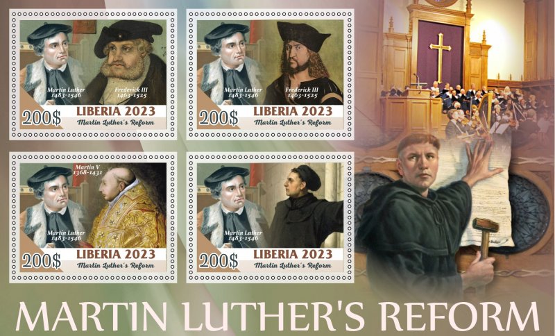 Stamps. Reform by Martin Luther 2023 year 1+1 sheets perforated
