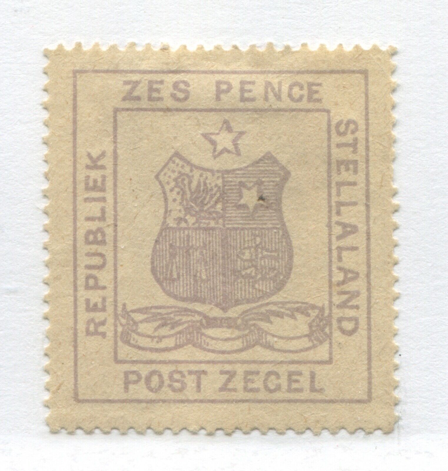 Grade: F/VF (Fine/Very Fine) Stellaland 1884 6d mint o.g. hinged Scott #4 Cat. $40.-Canadian buyers will be charged the appropriate GST or HST.This item will be sent by Canada Post 1st class mail. We combine shippi ... Read More