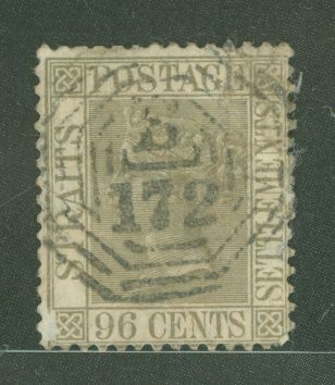 1867 96c olive gray, octagonal cancel B172 of Singapore, small pencil notation on backAPS Stamp Id: 501729886