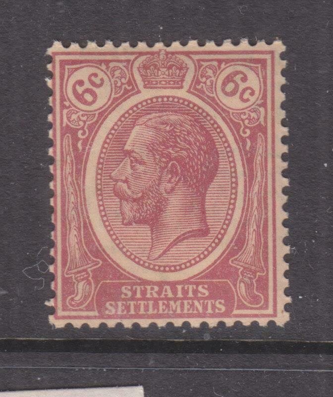 STRAITS SETTLEMENTS, 1922 KGV 6c. Dull Claret, Script CA, WATERMARK INVERTED, mnh., gum toned.
