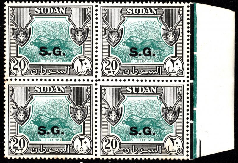 20p Nile Lechwe Overprinted S.G. Official Block. Mint never hinged.Seller Information