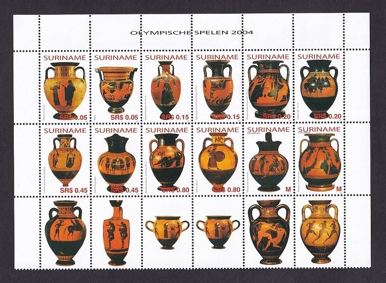 Surinam #1314 MNH 2004 block of 12 Greek amphorae