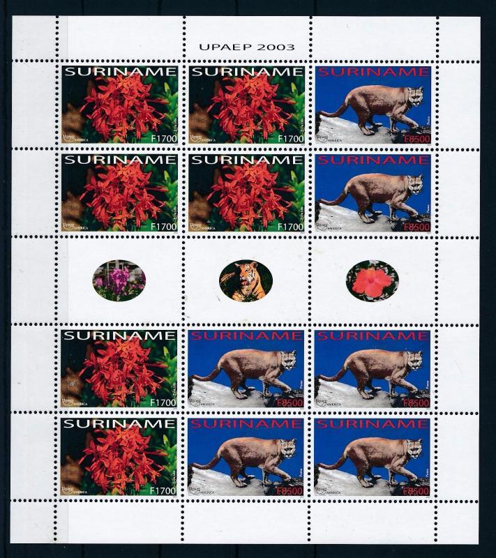 [SUV1214] Surinam 2003 UPAEP Puma Cats Flower Miniature sheet with tabs MNH