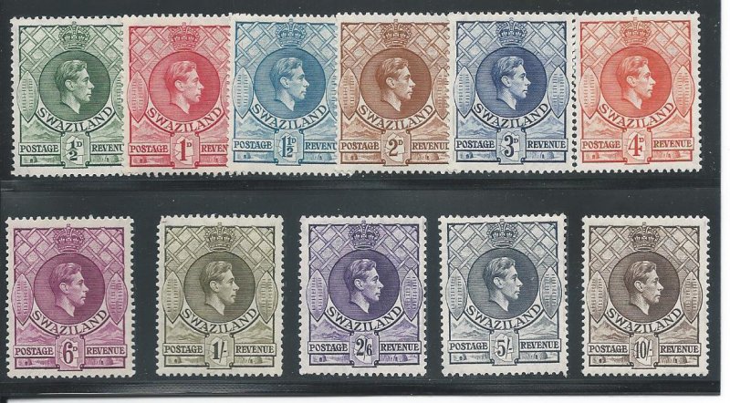 Swaziland 27-37 LH F-VF cplt. King George VI set with a SCV $ 58.75