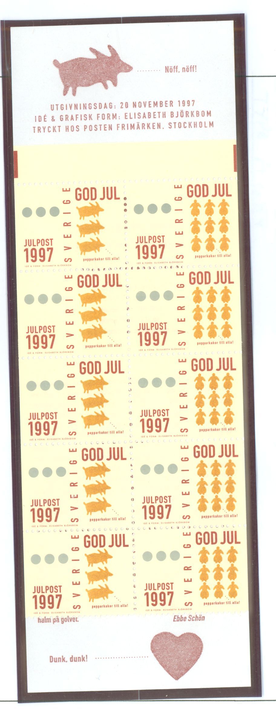 1997 booklet of 10 Gingerbread Cookies stamps, 2 designs, 3.50Kr, type A683. APS Stamp Id: 501998838 APS Seller Id: 554912 Hinge Type: NH