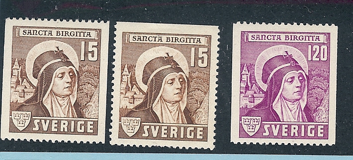 Sweden, 326-28, St. Bridget Singles, **Hinged**