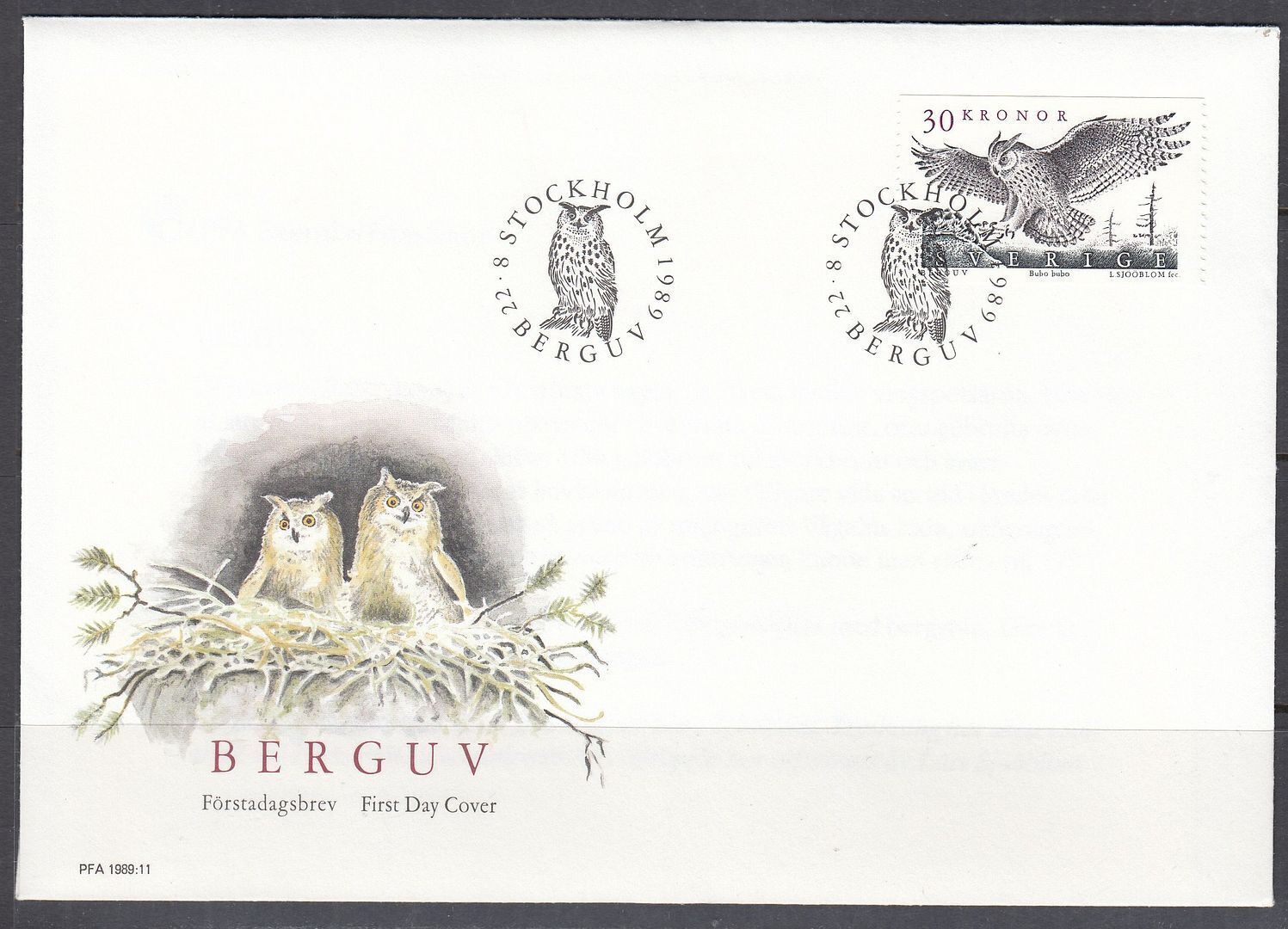 Sweden Scott 1761 FDC - Eagle Owl