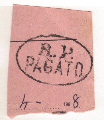 An odd postmark on the back of a clipping. R. P. PAGATO. Other side has a 3fr Matthaius stamp. Possibly from a parcel receipt.