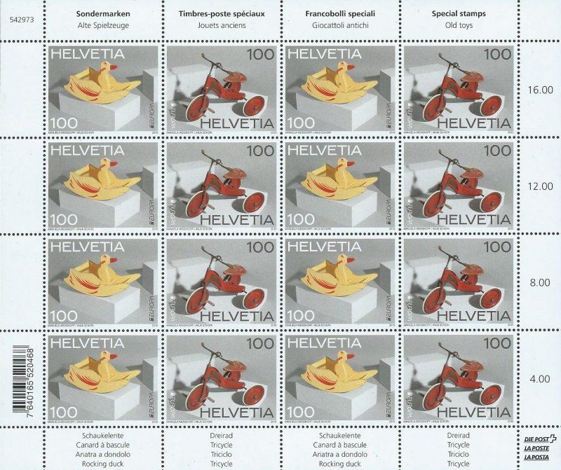 Switzerland Suisse Schweiz 2015 Europa CEPT Old toys sheetlet MNH