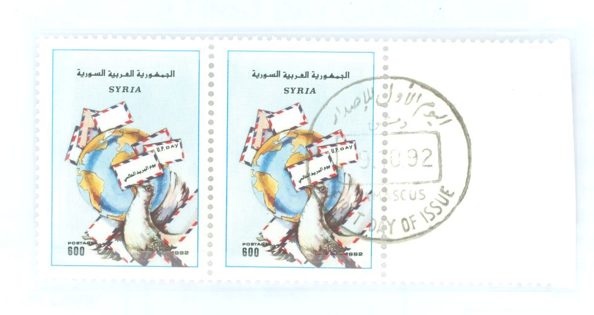 1992 World Post Day; two stamps MNH, one first day cancel APS Stamp Id: 501811950 APS Seller Id: 779521 Hinge Type: NH