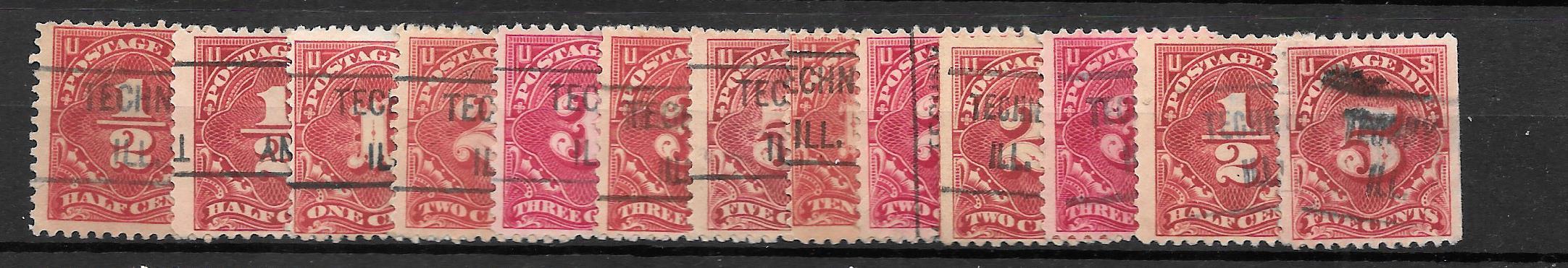 Techny Illinois Precancel Group Postage Due