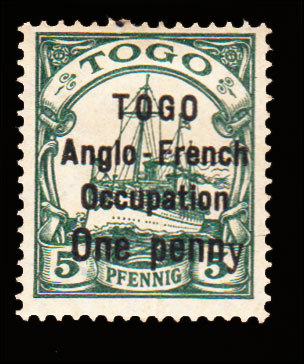 19 on 5pf Kaisers Yacht Overprinted TOGO Anglo-French Occupation One penny. Unused lightly hinged.Seller Information