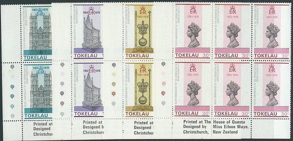 TOKELAU 1978 25th Anniv Coronation set plate blocks of 6 MNH...............41661