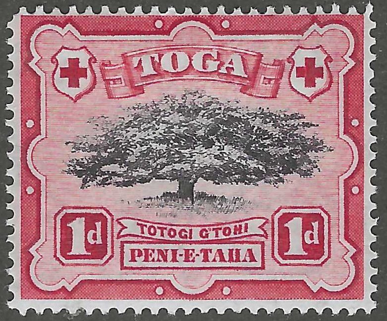 Tonga, stamp, Scott#40, mint, hinged, 1d, red, tree