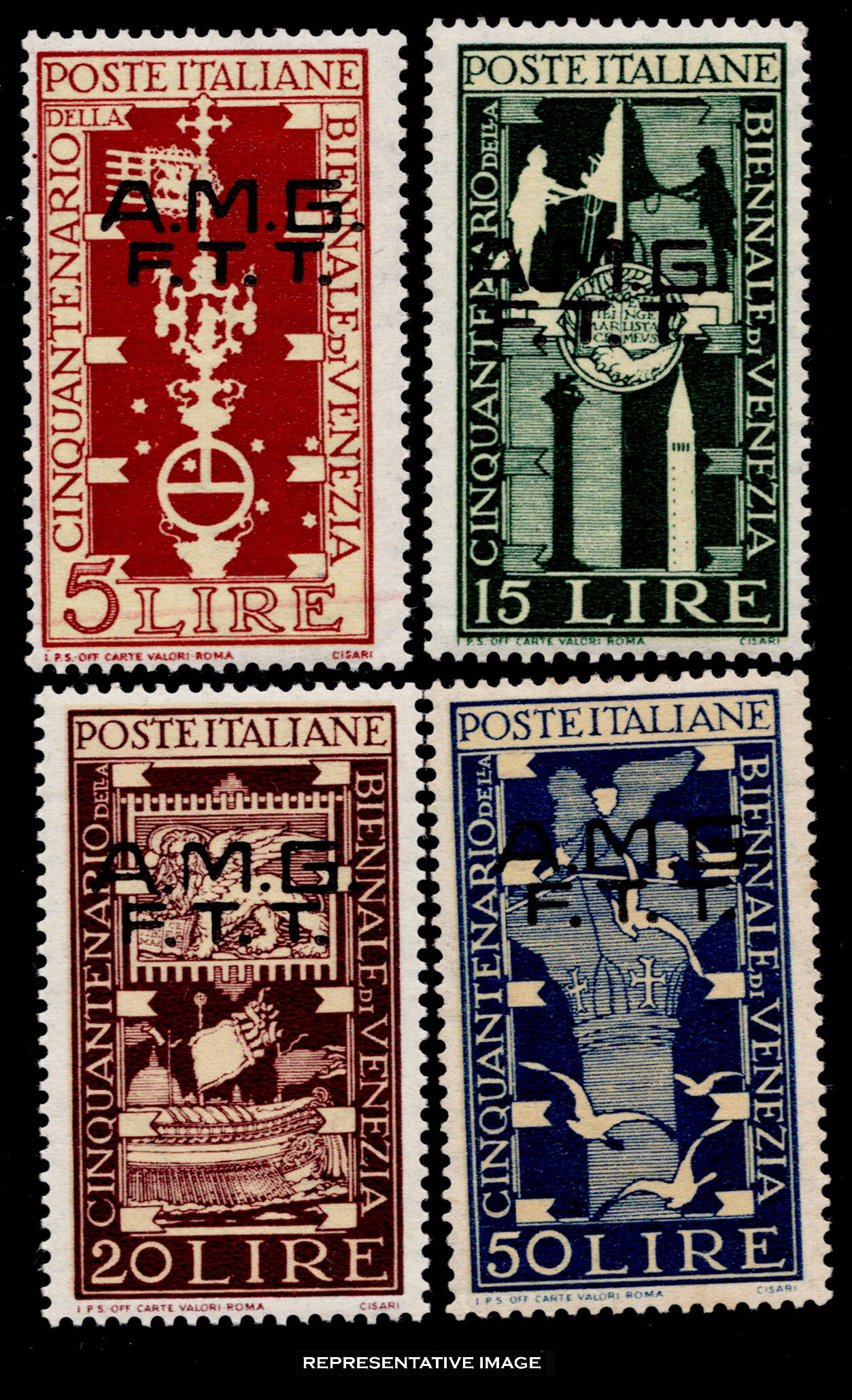Italy 5L, 15L, 20L and 50L Biennial Art Exhibition of Venice Overprinted AMG FTT. Mint never hinged.Seller Information