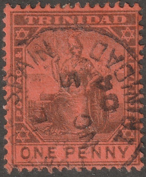 Trinidad, stamp, Scott#93, used, hinged, one penny