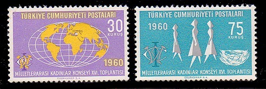 Turkey, Scott #1486-1487, 1960 Women's International Council, 16th Meeting issue in Mint Hinge Remnant condition.Scott 2023 Catalogue Value $0.60