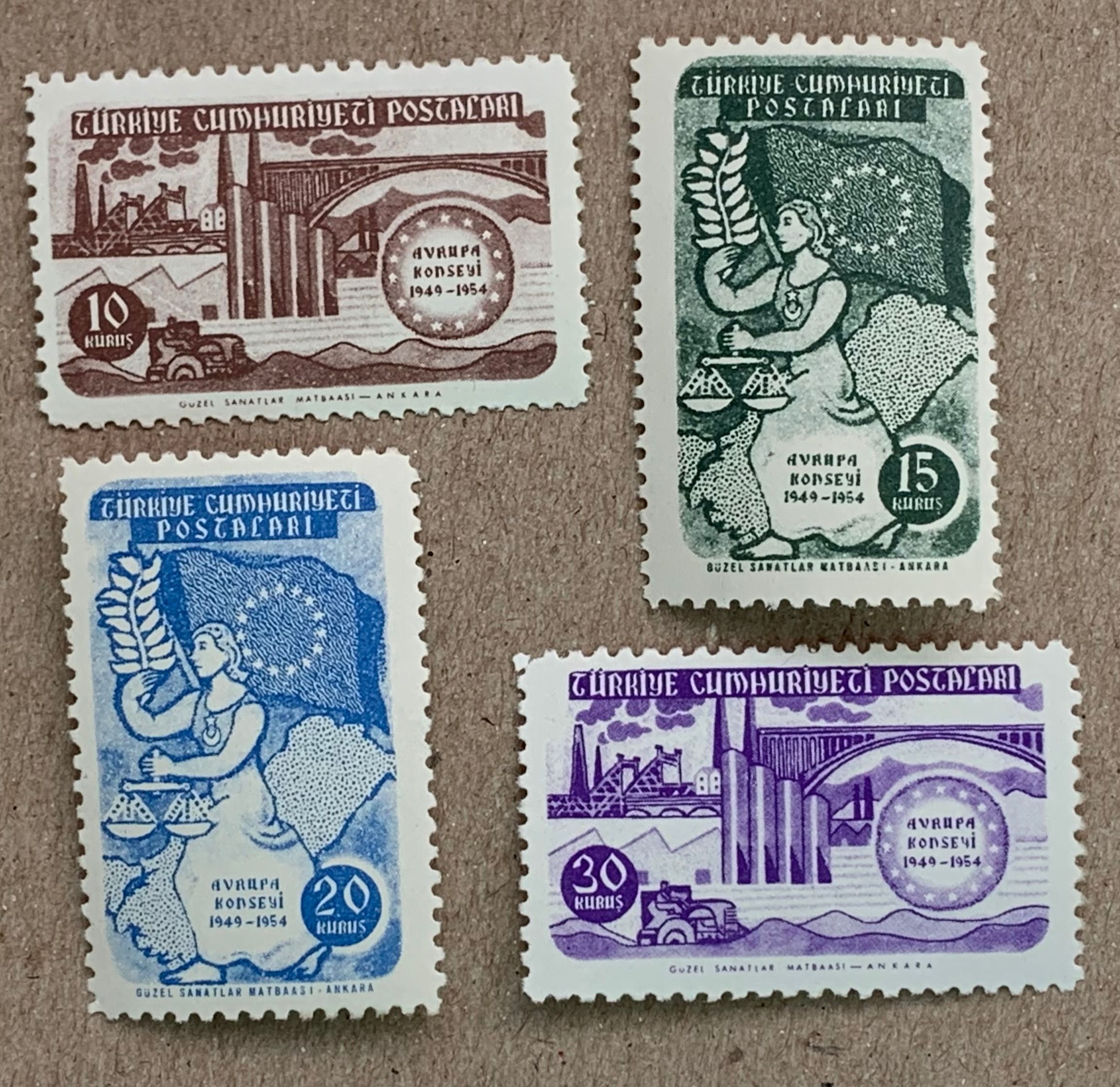 Turkey 1954 Council of Europe, MNH. Scott 1130-1133, CV $24.00