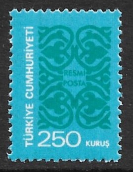 TURKEY - 1977 250k Light Blue and Green OFFICIAL Scott No. O144 Fresh Mint OG (NH).Seller Information