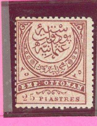 1878 mint NH 25 Piasters crescent top value of the set. Catalog values for hinged-NH not listed APS Stamp Id: 501910552 APS Seller Id: 508479 Hinge Type: NH