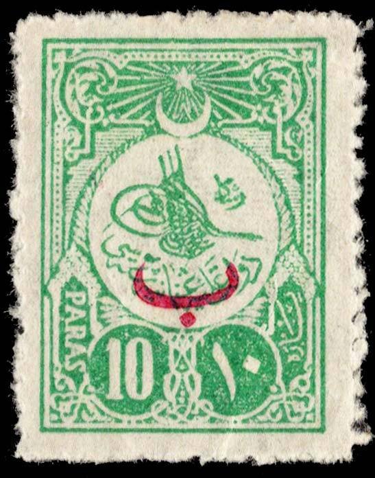10pa Tughra of Mohammed V Overprinted Discount. Unused hinged.