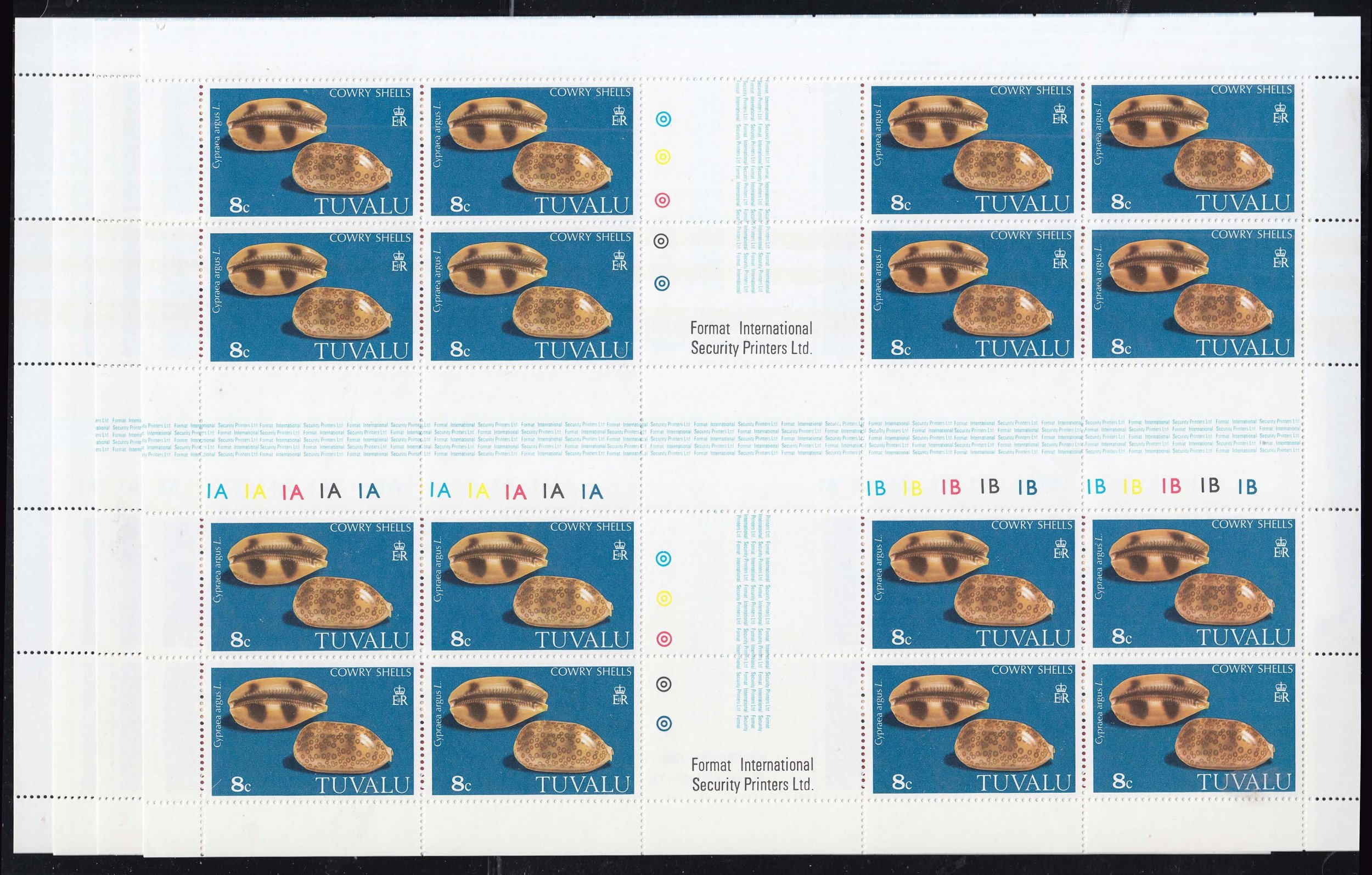8c, 20c, 30c and $40c Cowry Shells Sheets of sixteen with Gutters. Mint never hinged.