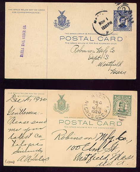 Two (2) PHILIPPINES POSTAL CARD 1915 & 1920