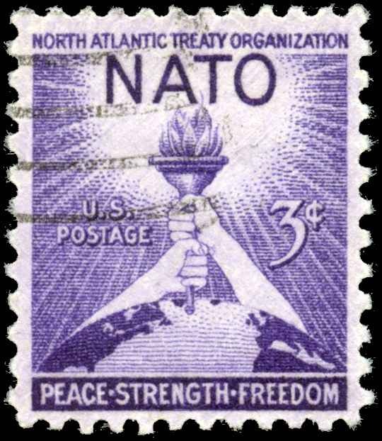 Stamp Evaluation – Scott #1008 (Used, Hinged – Single Stamp)3¢ Violet – NATO 1952, Peace, Strength, Freedom