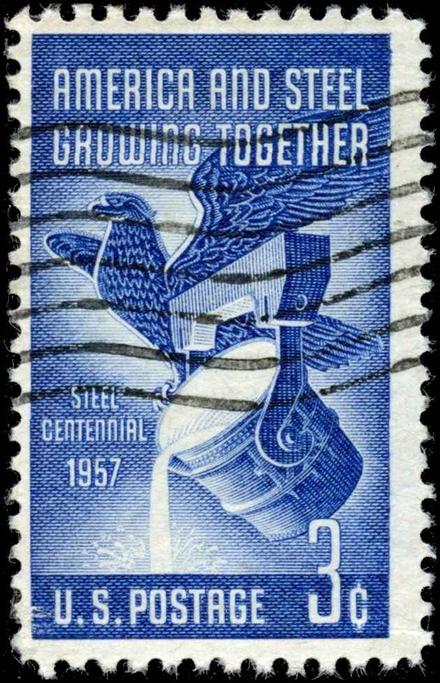 Stamp Evaluation – Scott #1090 (Used, Never Hinged – Single Stamp) 3¢ Deep Blue – America and Steel Growing Together, 1957 (Steel Industry Centennial Issue – Engraved, Perf 11×10½, Unwatermarked) Design Overview: ... Read More