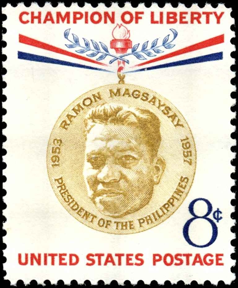 Stamp Evaluation – Scott #1096 (Unused, Never Hinged – Single Stamp)8¢ Multicolor – Ramon Magsaysay, Champion of Liberty, 1957