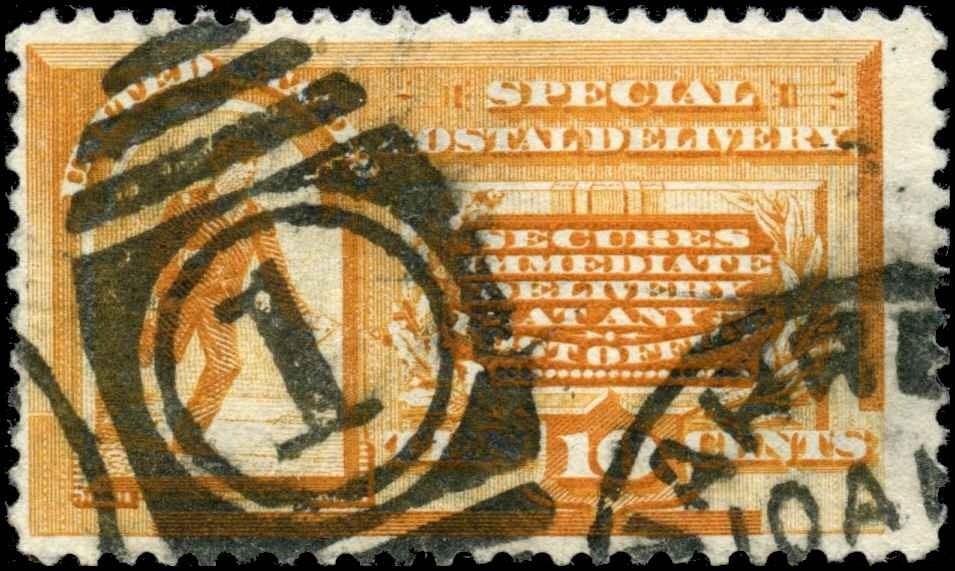 Stamp Evaluation – Scott #E3 (Used, Hinged, No Original Gum – Single Stamp)10¢ Orange – Messenger Running, 1893