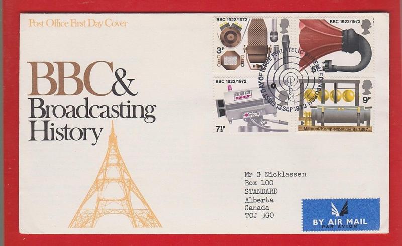 UK 1972 BBC & Broadcasting FDC