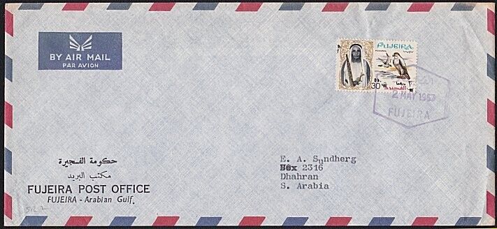 UNITED ARAB EMIRATES 1967 cover FUJEIRA to Saudi Arabia....................B1727